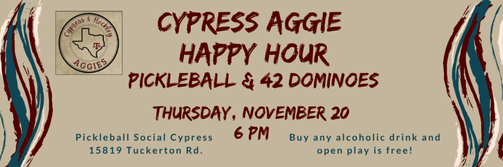 November 20 @ 11:30 am - 1:00 pmCypress Aggie Happy Hour & Pickleball