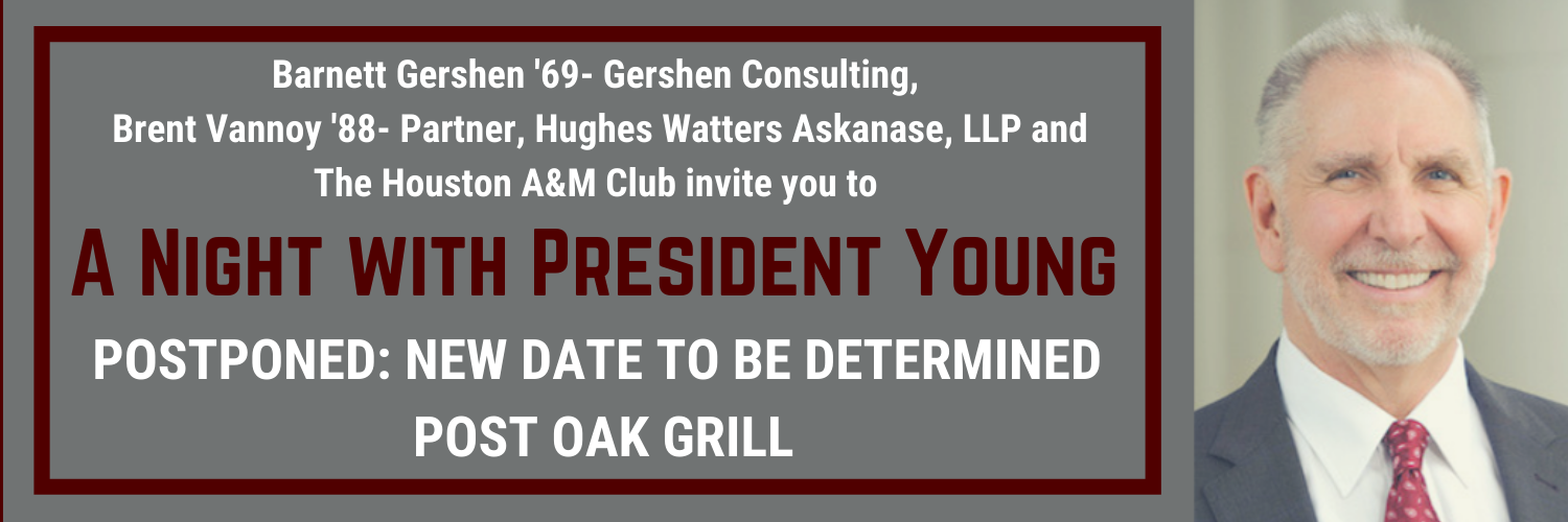 Mar 26 6:00 pm - 9:00 pm Night with President Young Post Oak Grill 1415 S. Post Oak Lane, Houston Event Details Get Directions