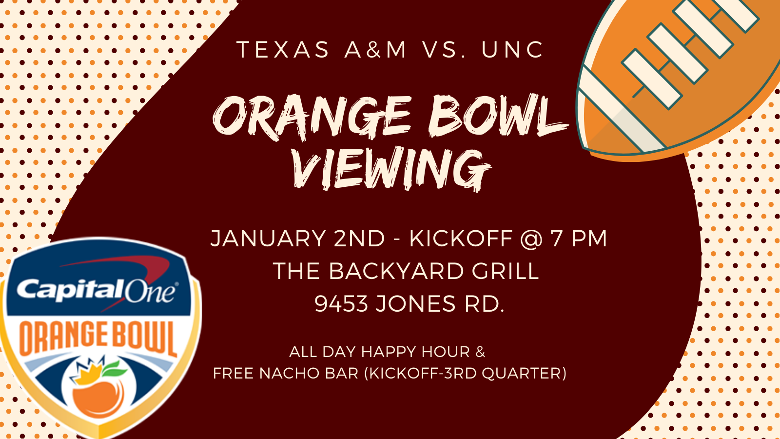 Backyard Grill 9453 Jones Rd, Houston, TX, United StatesJoin the Houston A&M Club at The Backyard Grill on Saturday, January 2nd to watch the Fightin' Texas Aggies beat the hell out of the UNC Tarheels! Kickoff is at 7:00 p.m. The Backyard Grill will be offering an All Day Happy Hour (beginning at 11:00 a.m.) and a FREE Nacho Bar for Aggie fans […]