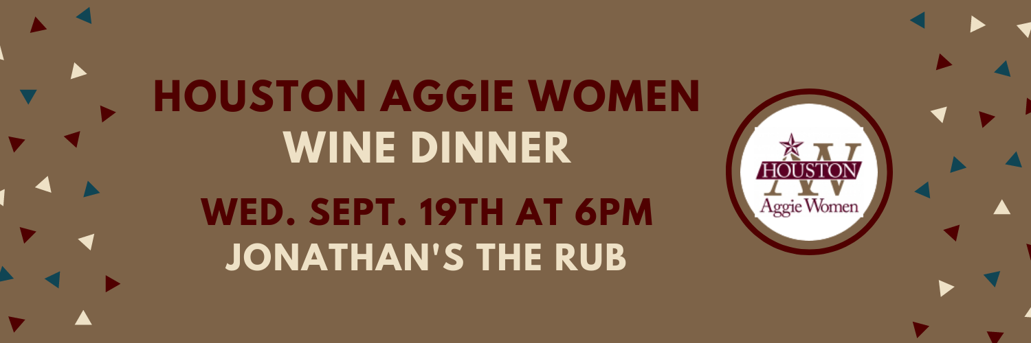 September 19, 2018 @ 6:00 pm - 9:00 pm Houston Aggie Women Wine Dinner Houston, TX Click Here for More Info